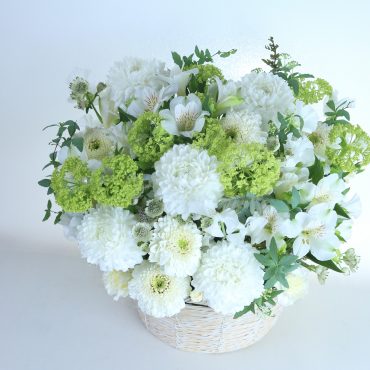 こちらのお花は宅配便での配送手配となったので、いつもよりもカチッとした雰囲気でお作りしております。